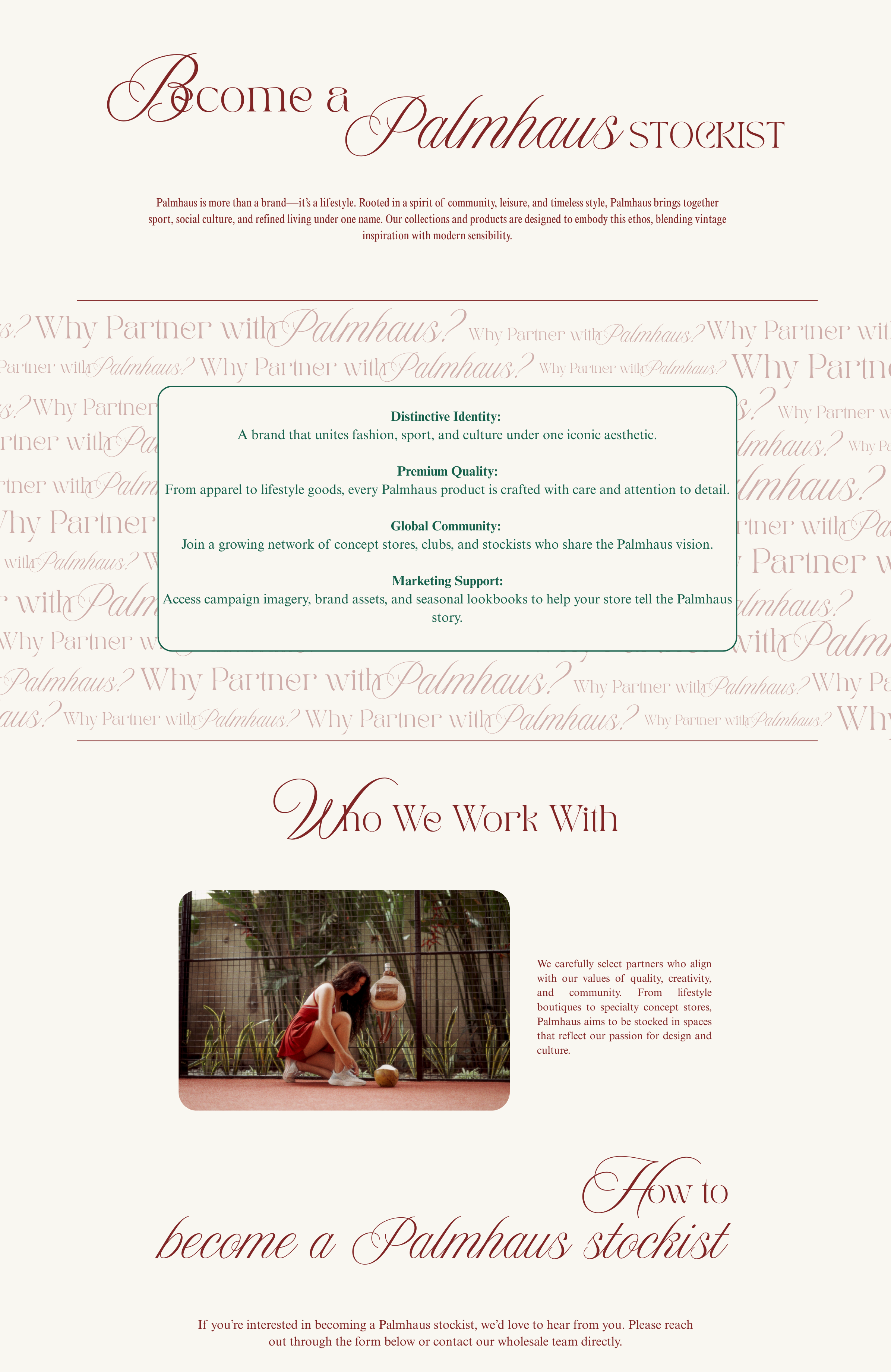 Interested in stocking Palmhaus products? Fill out the form below and we'll get back to you as soon as possible.